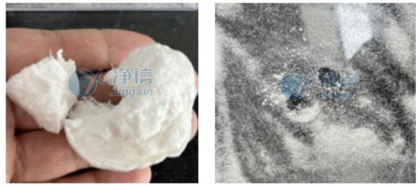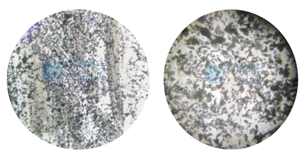 經全自動浸入式液氮冷凍研磨儀處理后的PVA和絲素蛋白在肉眼觀察下,呈現細膩的狀態。通過顯微鏡觀察,和以前用舊款儀器研磨的樣品對比發現,無論是在低倍還是高倍狀態下,通過凈信研磨儀處理的樣品的顆粒細膩程度都較優。舊款儀器處理的樣品在高倍鏡下觀察還存在一定程度的組織結構,而凈信研磨儀處理的樣品已成均勻顆粒狀。