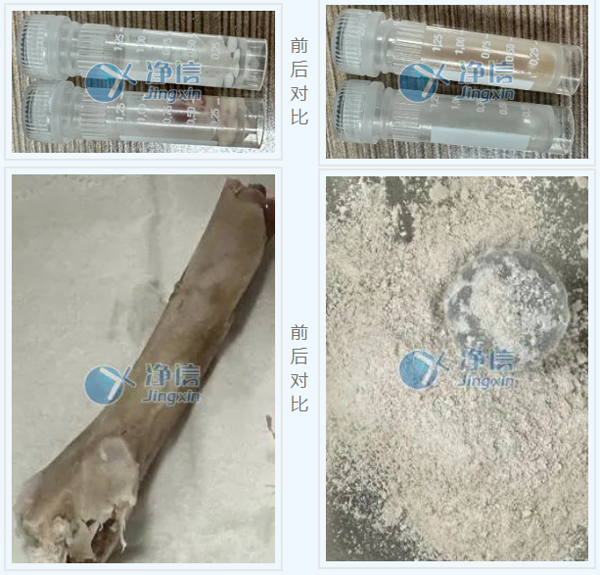 與實(shí)驗(yàn)前對(duì)比,組織塊成均勻漿狀,骨頭呈細(xì)膩粉末狀。在生物提取實(shí)驗(yàn)中,我們需要對(duì)樣品進(jìn)行研磨,研磨的方式一般可分為干磨和濕磨,但無論哪一種方法,呈現(xiàn)的效果需要足夠均勻和細(xì)膩才能保證后續(xù)提取實(shí)驗(yàn)的成功率。本實(shí)驗(yàn)中的樣品均已達(dá)到實(shí)驗(yàn)要求,可用于后續(xù)提取實(shí)驗(yàn)。