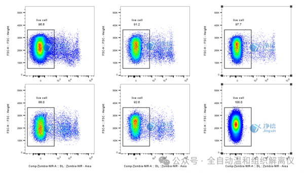 實驗結果顯示,制備的脂肪單細胞懸液活率接近100%(下方流式結果圖),優(yōu)于常規(guī)制備方法的活率水平。高活率細胞不僅能確保下游實驗的準確性,更能減少樣品浪費,降低科研成本。