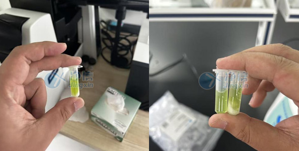 實驗目的:本次實驗對象為微藻,后續會做到核酸蛋白提取。作為微生物,且此類微藻細胞壁非常厚,研磨起來也是一個難點,要求研磨徹底,以便提高蛋白及核酸的濃度,涉及到蛋白、RNA提取還需要低溫研磨,之前用超聲破碎長時間也無法破碎,因為樣品本身是液體,所以溫度也不能太低,否則凍住液體無法研磨,經過比較推薦,最終客戶選擇上海凈信全自動樣品快速組織研磨儀處理樣品。