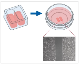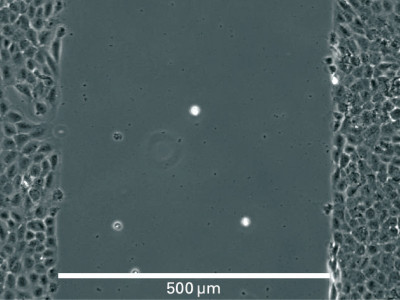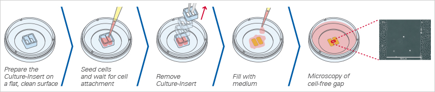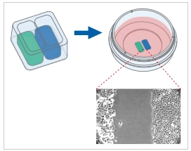 Wound healing and migration assays are done by seeding cells into the Culture-Insert 2 Well. After cell attachment, a cell-free gap is created in which the cell migration can be visualized.