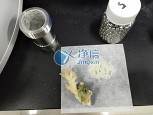 將海底珊瑚剪成小塊放入50毫升鋼罐中,加入專用研磨珠擰緊鋼罐后放入研磨機(jī)里,調(diào)整好參數(shù)待結(jié)束后即可得到實驗結(jié)果。