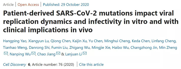 近日,李蘭娟院士團隊等在 Cell Discovery 雜志發表了題為:Patient-derived SARS-CoV-2 mutations impact viral replication dynamics and infectivity in vitro and with clinical implications in vivo 的研究論文。李蘭娟院士團隊從浙江大學附屬醫院收治的新冠患者中鑒定到11個SARS-CoV-2病毒株,發現鑒定出的突變會直接影響新冠病毒的滴度和感染能力,差異多可達1500倍。該研究提供了直接證據,表明新冠病毒的自然突變會嚴重影響病毒的復制和感染能力,并影響感染者的病情嚴重性。