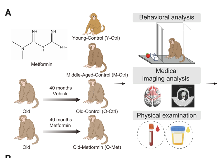 經(jīng)過多年的努力,研究團(tuán)隊取得了重要發(fā)現(xiàn)。他們證實,長期服用二甲雙胍可減緩靈長類動物的衰老進(jìn)程,改善認(rèn)知功能,并顯著降低多種衰老相關(guān)指標(biāo)。這一成果為二甲雙胍在人類抗衰老治療中的應(yīng)用提供了重要的理論依據(jù)。值得一提的是,該研究還構(gòu)建了一個基于多維度生物標(biāo)志物的靈長類衰老時鐘度量體系,為未來衰老干預(yù)措施的效果評估提供了新的標(biāo)準(zhǔn)。