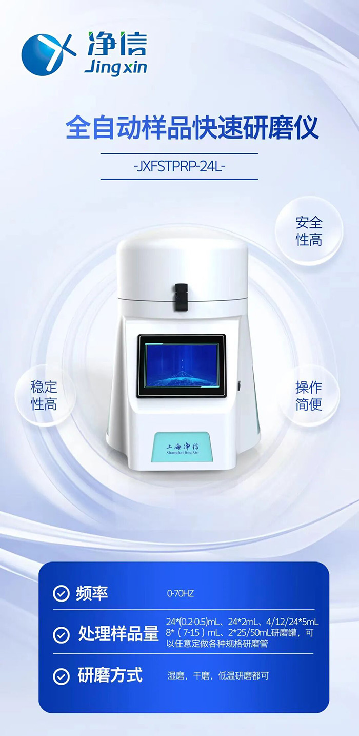 工欲善其事,必先利其器。在食品安全檢測領域,前處理的效率和精度直接影響著數據質量與監管效能。凈信全自動樣品快速研磨儀,以其在樣品前處理環節展現出的均勻、低溫、安全的優勢,正成為眾多檢測實驗室提升紅薯粉條等食品農殘檢測能力的得力助手。