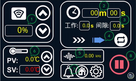 顯示內(nèi)容 | 頻率、溫度、功率、時間等顯示 |