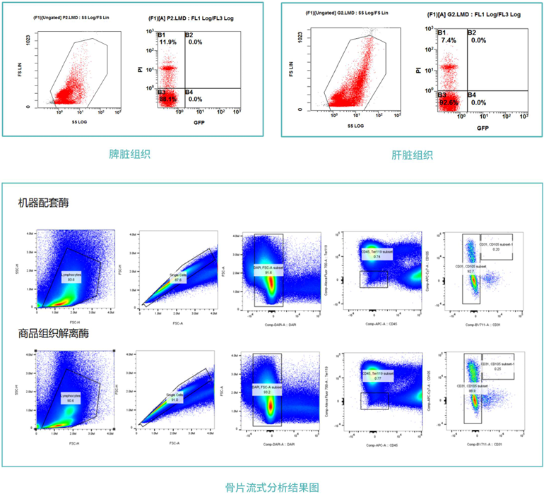 樣品通過(guò)雙向的機(jī)械切割與消化酶混合作用,通過(guò)恒溫消化,組織剪切,得到高濃度的活細(xì)胞懸液。后續(xù)經(jīng)過(guò)消化終止,過(guò)濾洗滌,必要時(shí)加以紅細(xì)胞裂解等步驟,可得到百萬(wàn)到千萬(wàn)級(jí)別的活細(xì)胞,不同的組織均可以達(dá)到90%以上的細(xì)胞得率。